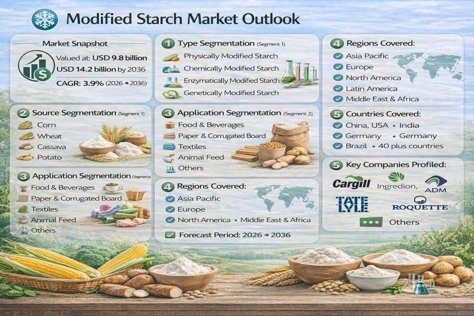 - India (4.8% CAGR): Driven by an explosive surge in organized snack food production and "Make in India" incentives for local starch processing.